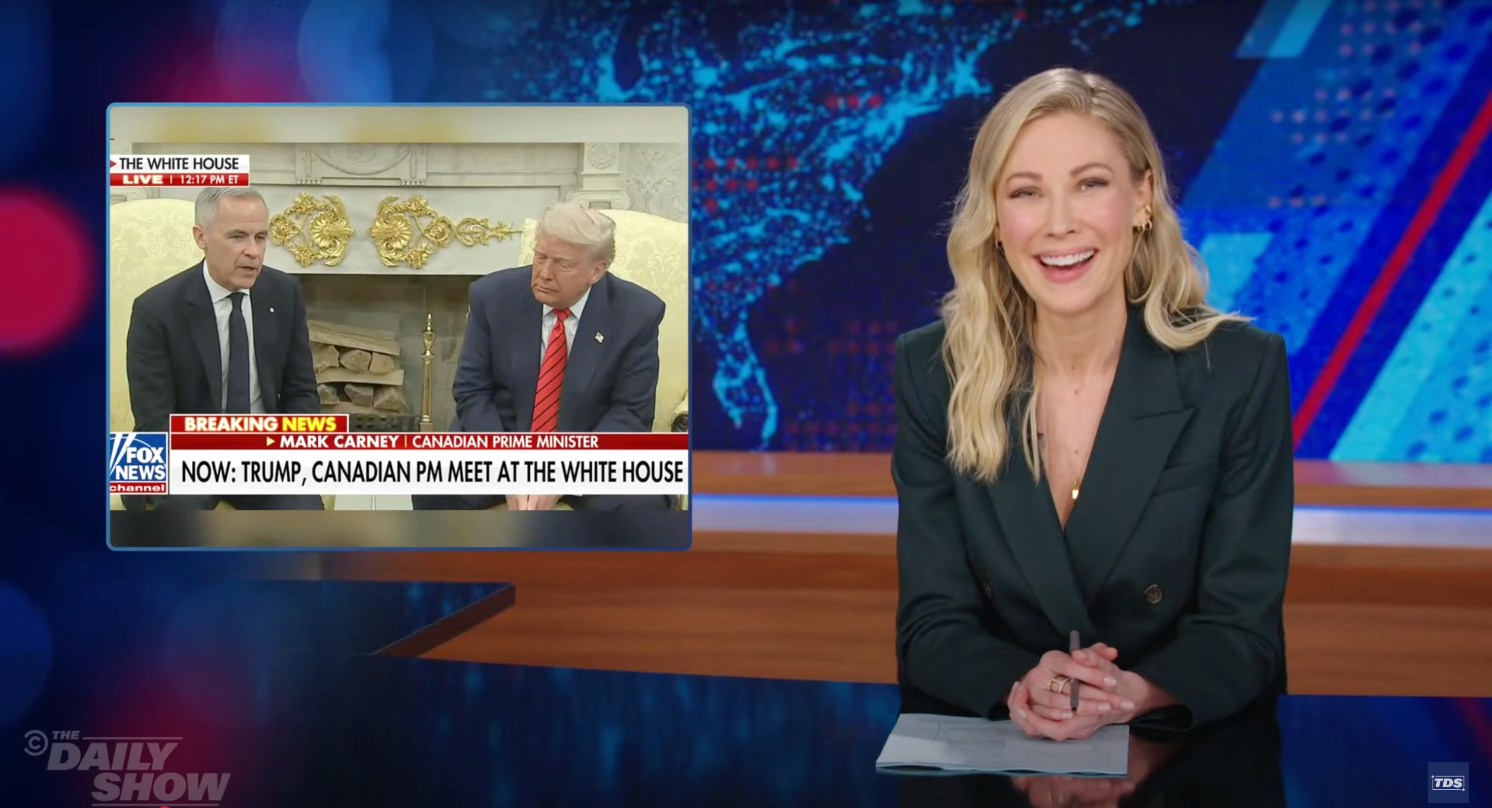 “Daily Show” correspondent Desi Lydic on Tuesday clowned President Donald Trump over his annexation threats toward Canada following his Oval Office meeting with Canadian Prime Minister Mark Carney.