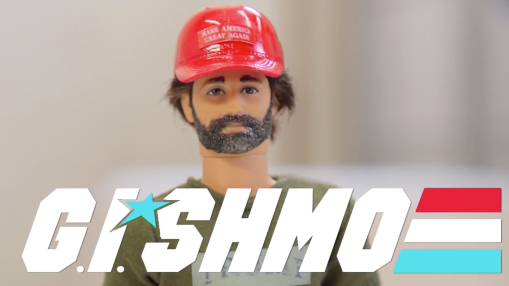 The toy ― called “G.I. Shmo” ― comes with a “spray-on beard, a pile of daddy’s money and a helicopter to shoot elephants from,” joked the host of “Jimmy Kimmel Live!”
