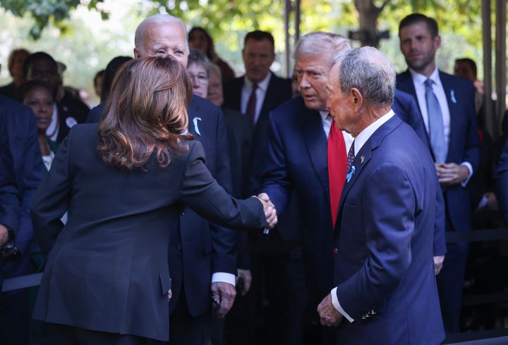 Kamala Harris, Donald Trump Shake Hands At 9/11 Memorial At World Trade Center