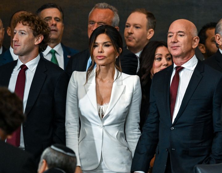 At the swearing-in ceremony in the Capitol rotunda, Sánchez was seated beside her fiancé, Amazon founder Jeff Bezos, and Meta CEO Mark Zuckerberg. The TV journalist wore a white Alexander McQueen blazer with a peekaboo push-up corset bra ― a look that many online, both on the right and the left, took overstated offense to.