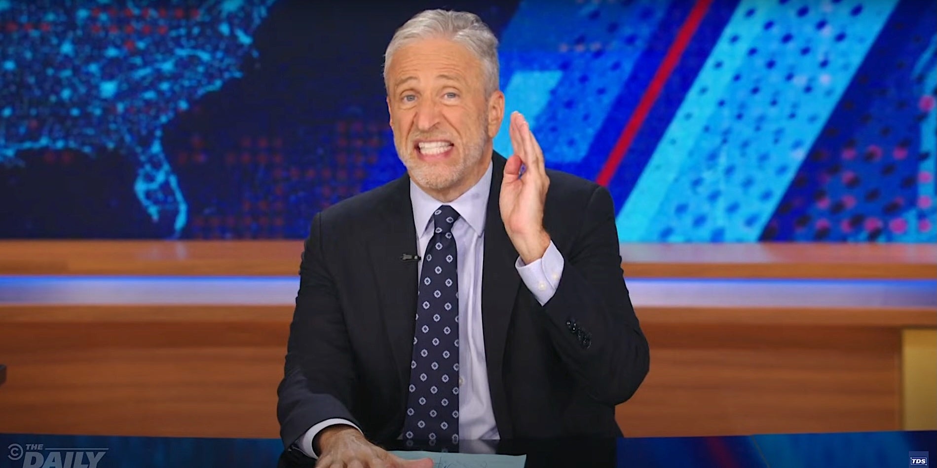 “That’s it?” Stewart said in mock disbelief. “No exclamation points, no all caps, no insults, whole thing spelled correctly. It’s really got all the telltale signs of a post definitely written by Donald Trump.”