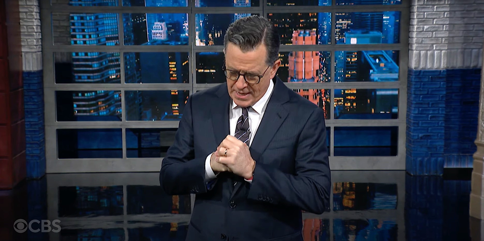 Colbert clasped his hands together and bowed his head.