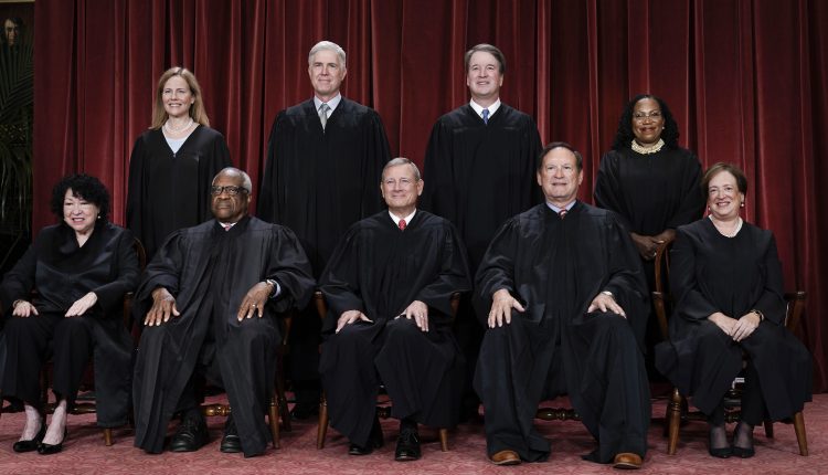 Members of the Supreme Court sit for a new group portrait at the Supreme Court building in Washington, Oct. 7, 2022. (AP Photo/J. Scott Applewhite, File)