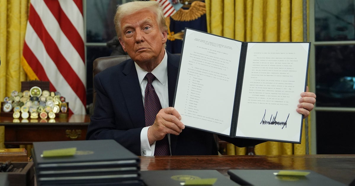 While signing a series of executive orders at the White House hours after his inauguration, Trump said he was pardoning about 1,500 defendants charged in the attack on the U.S. Capitol — including those who assaulted police — and issuing some commutations.