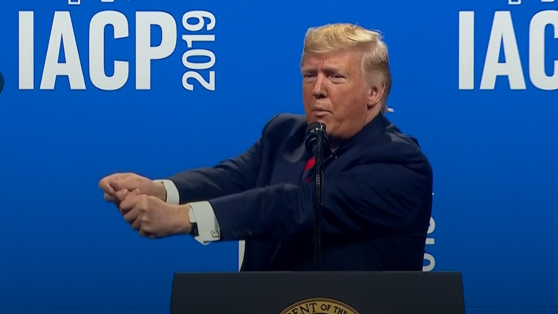Trump’s love of violence came out Monday afternoon as well, during a speech in Chicago to the International Association of Chiefs of Police. He paid homage to the officers who took out a mass shooter in Dayton, Ohio, on Aug. 4.