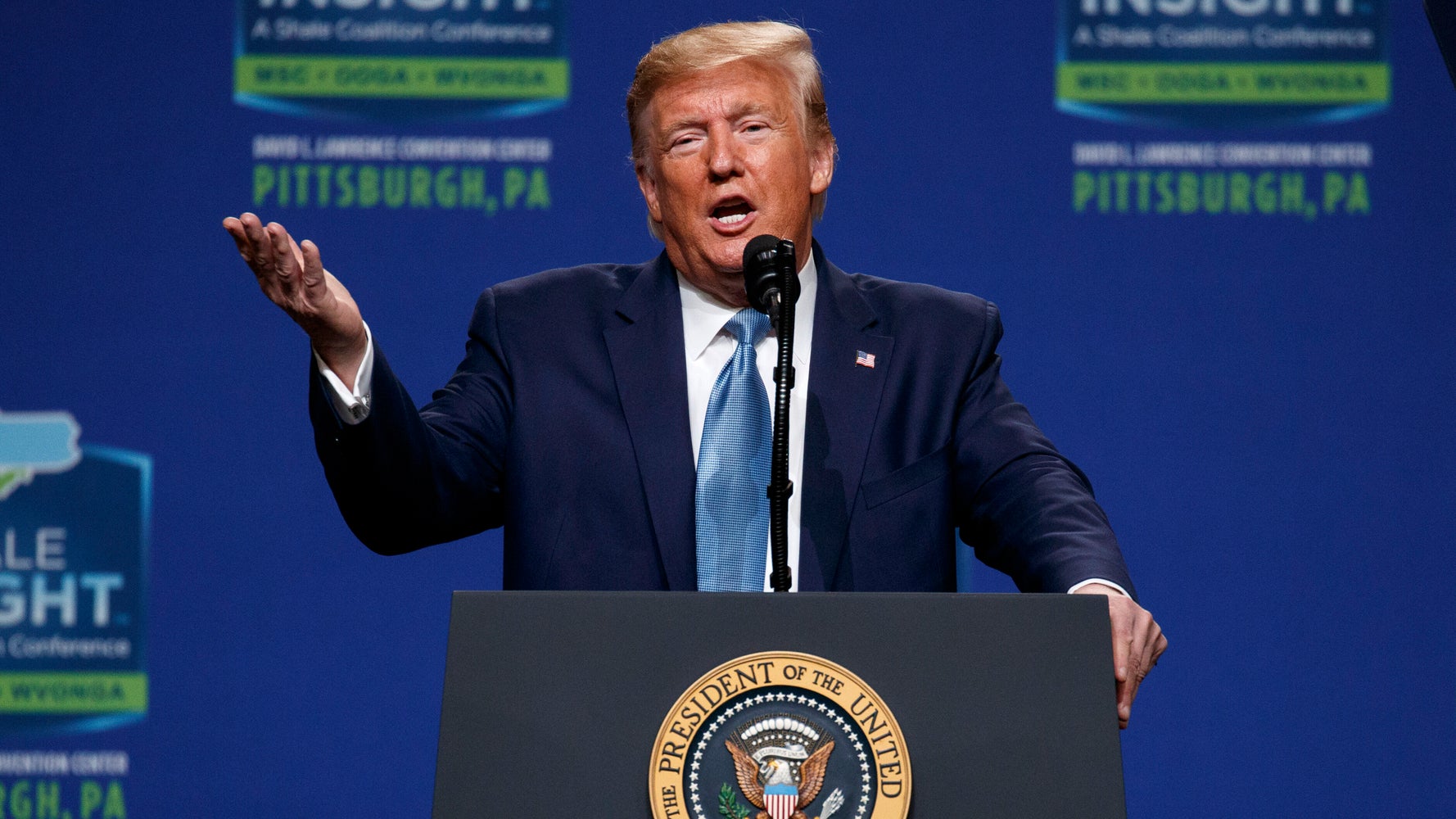 On Wednesday, the president spoke at the Shale Insight Conference in Pittsburgh, where he made a bizarre comment about how his administration is building a wall in Colorado.